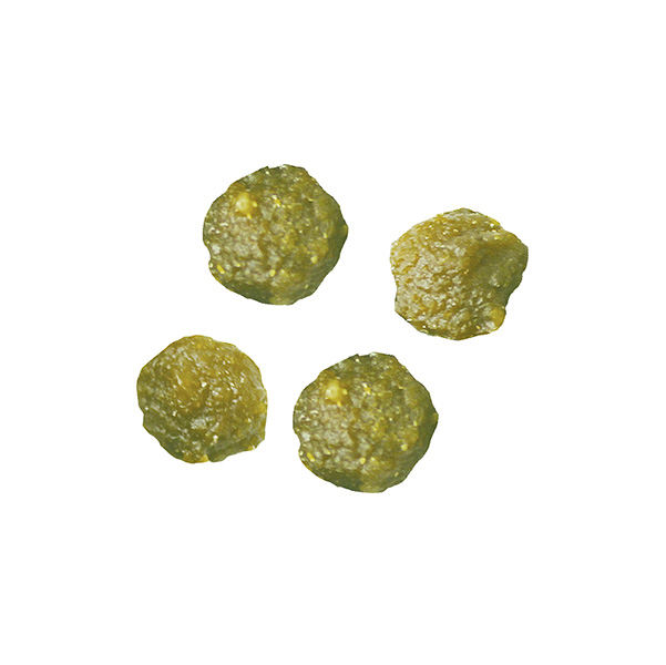 | 原材料 | 雞肉、脫脂大豆、小麥粉、日式麵包粉、糖、植物油、植物脂肪、酵母提取物、蔬菜(大麥嫩葉、羽衣甘藍、西蘭花、南瓜、肉桂、巴西里、胡蘿蔔、芹菜、菠菜、桑葉、埃及帝王菜、艾草、蕃茄)、綠藻、甘油、海藻糖、山梨糖醇、礦物質(鈉)、維生素E、多磷酸鈉 |