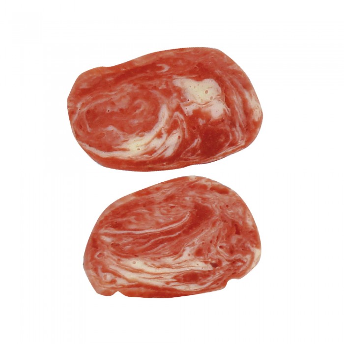 肉(雞肉、牛肉)、麵粉、玉米澱粉、乳清粉、山梨糖醇、甘油、磷酸鹽(Na)、防腐劑(山梨酸鉀)、色素(焦糖、氧化鈦、β-胡蘿蔔素、紅106)、香料 |