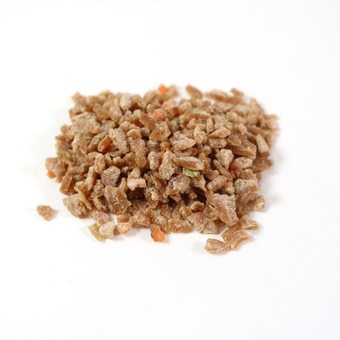 | 原材料 | 小麥粉、玉米澱粉、肉類(雞肉、雞肝)、胡蘿蔔、菠菜、乳酸菌、山梨醇、甘油、色素(焦糖、β-胡蘿蔔素、紅106、藍1)、調味料 |