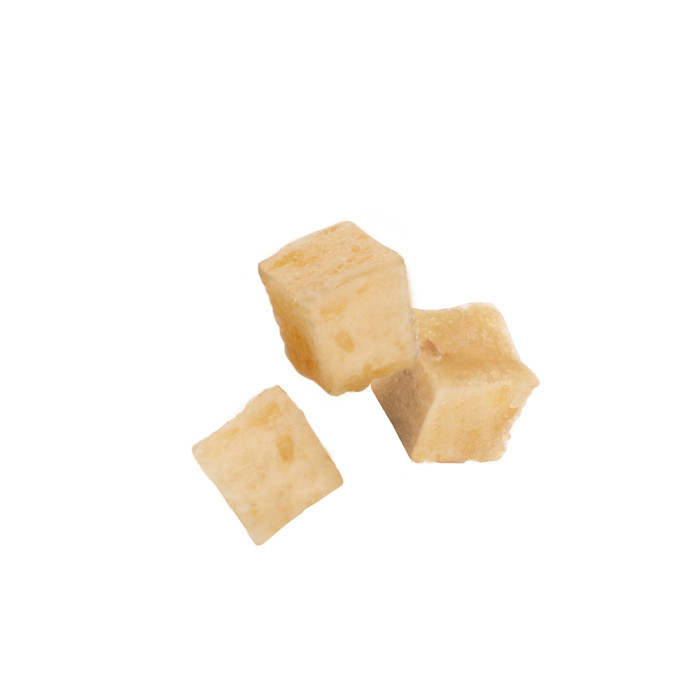 原材料 | 肉類(雞柳、雞胸肉、雞肉)、米粉、糖類、木薯澱粉、膠原蛋白肽、軟骨提取物(含有軟骨素)、甘油、海藻糖、山梨醇、膨脹劑、礦物質類(鈉)、磷酸鈉、著色劑(梔子、金盞花)、葡萄糖胺 |
