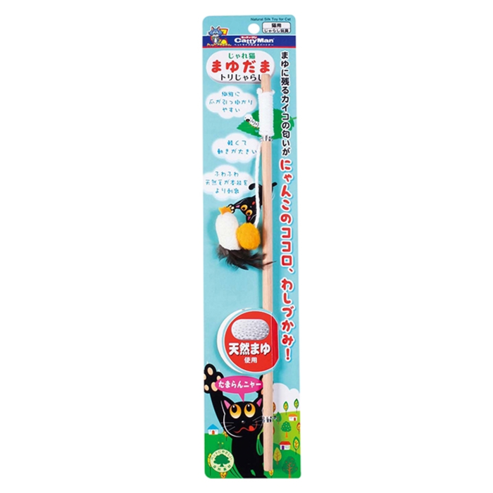 .使用天然蠶繭製成的棍子和繩子的逗貓棒,貓對天然的繭和羽毛相當著迷。