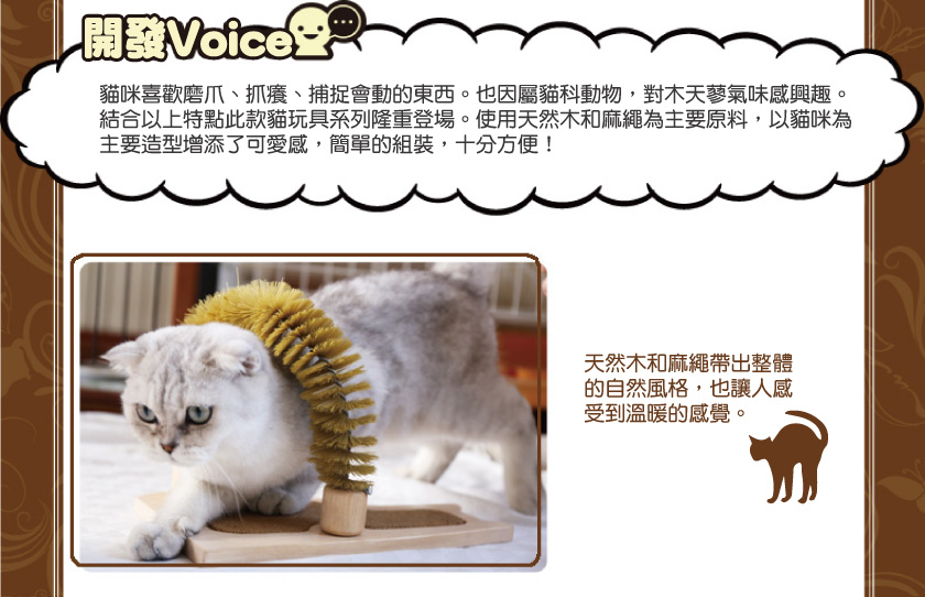 ・使用天然木材製造,有著溫暖高貴木材質感的貓被刷。