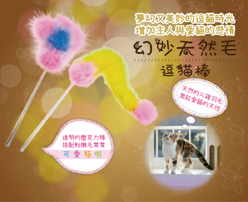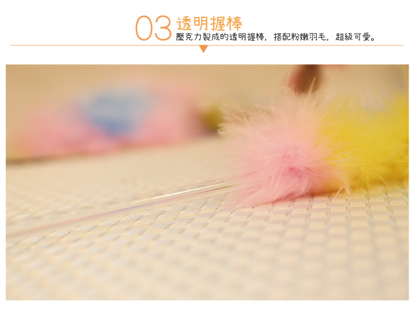 ・顏色粉嫩可愛富有夢幻色彩,搭配透明壓克力棒,彷彿仙女魔棒一般,輕輕揮舞散發魔力,夢幻美妙的逗貓時光,增加貓奴與喵星人間的互動情感。