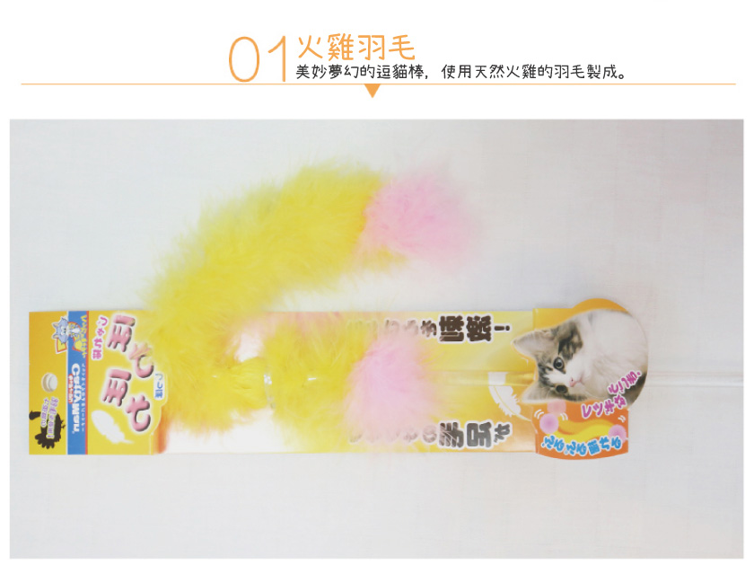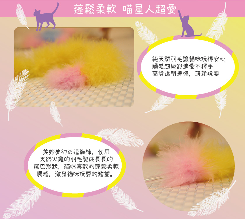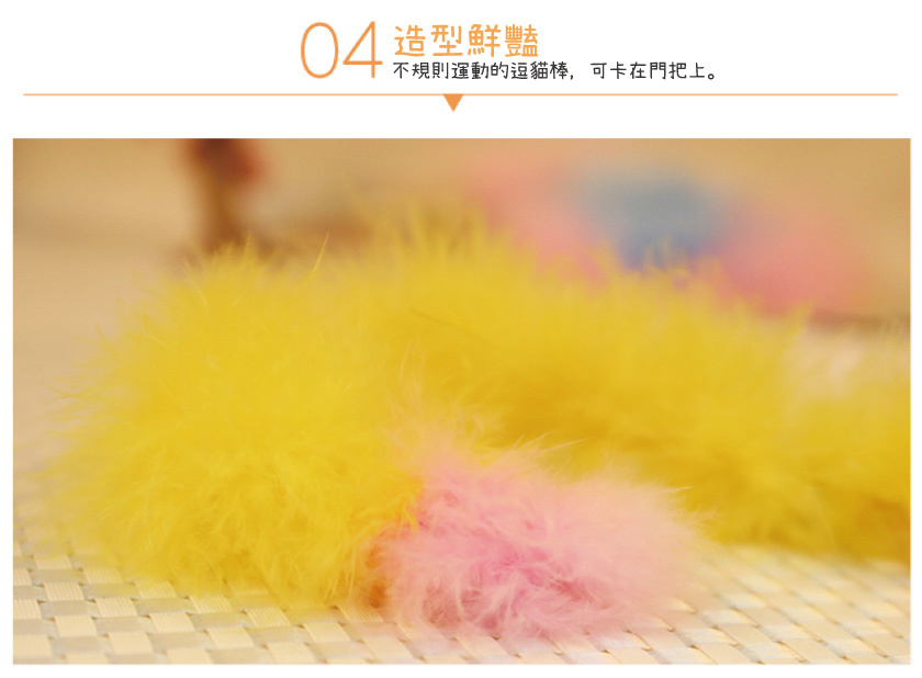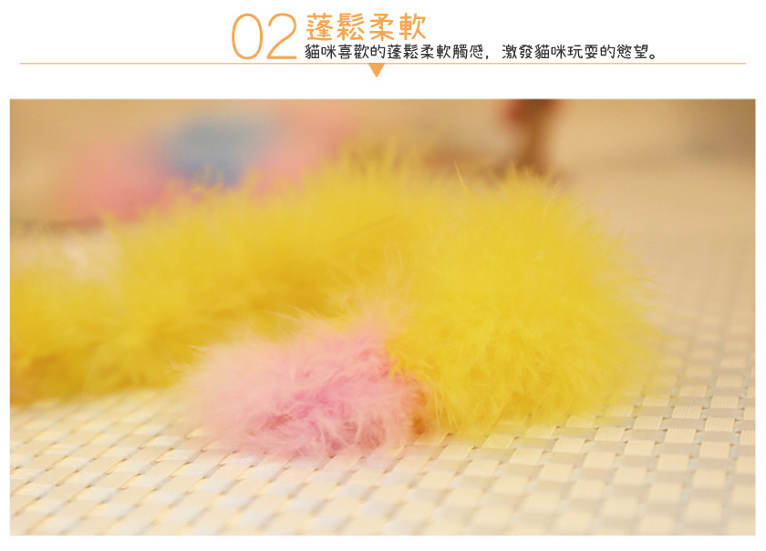 ・以天然的火雞毛為原材料製作成毛絨柔軟的形狀,揮舞時絨毛隨風飄動,激起愛貓的天性。