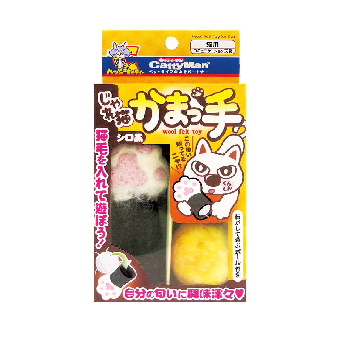 ・使用天然羊毛製作而成的可愛貓咪手掌玩具,可以將它套在手上與貓咪一起玩耍,也可將貓毛放入手掌內,羊毛結合貓毛刺激貓咪的嗅覺。
