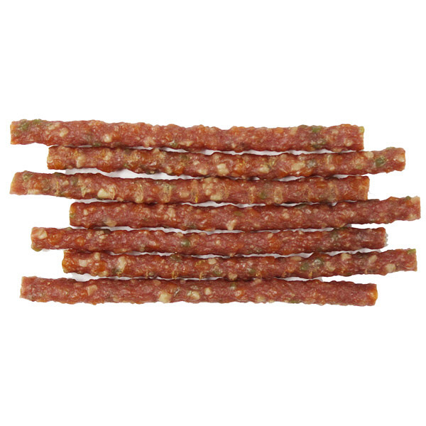 | 原材料 | 牛肉、雞里肌、雞皮、膠原蛋白、小麥、植物油、胡蘿蔔、菠菜、乳酸菌、山梨糖醇、甘油、丙二醇、礦物質(鈣、磷、鈉、鋅、鐵、銅、碘、錳)、磷酸鹽(鈉、鉀)、山梨酸、山梨酸鈉、脫氫醋酸鈉、維生素C、維生素E、維生素A、葉酸、泛酸、維生素D、核黃素、鈷胺素、食用色素(黃色5、氧化鈦、黃色4、紅色3、藍色1、紅色106)、亞硝酸鈉 |