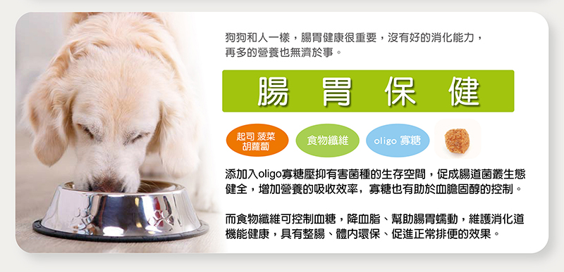 *添加oligo寡糖及食物纖維,幫助腸胃蠕動,呵護愛犬消化道日常機能。