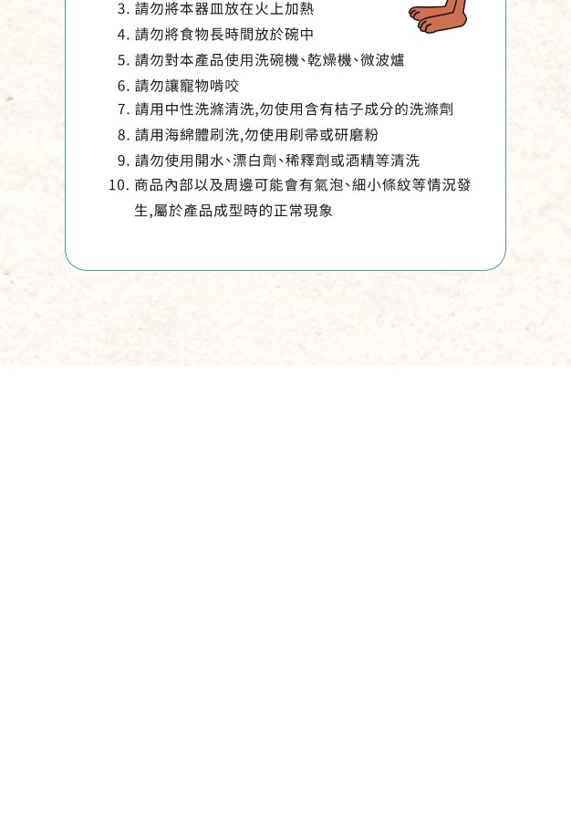 ★請勿對本產品使用洗碗機、烘碗機、微波爐。
