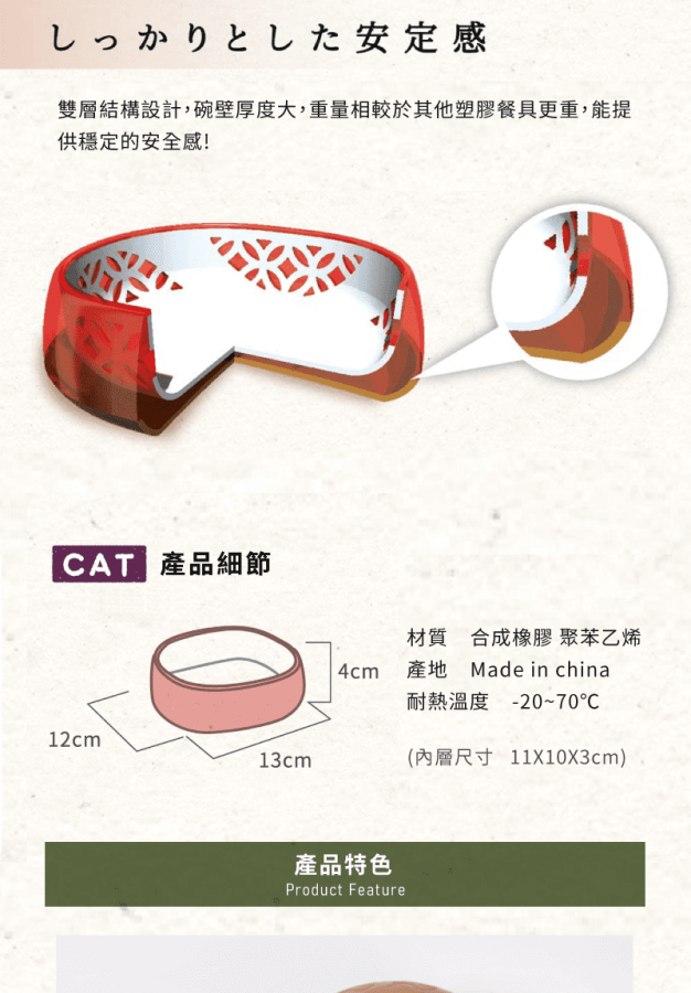 ・耐熱溫度約70度 耐冷溫度-20度。