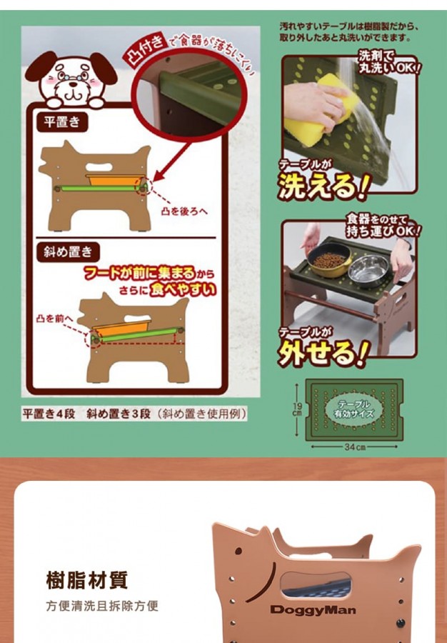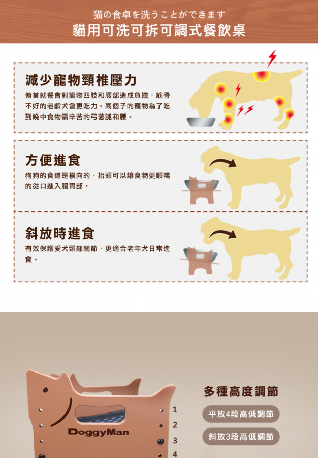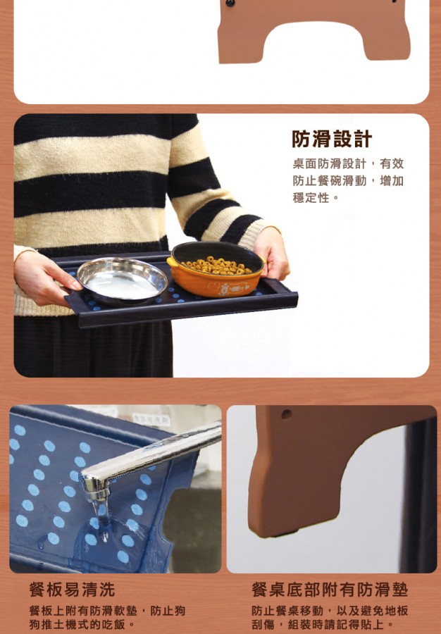 ・餐台清洗容易,表面設計增加止滑點,愛貓不必一面吃一直追著碗跑。
