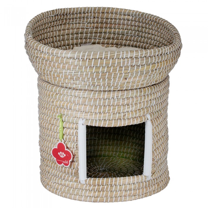貓用編織圓頂雙層睡窩(小紅花標籤)
