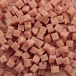 穀類(小麥粉、麵筋)、肉類(雞柳、雞肉)、奶酪、砂糖、明膠、脫脂奶粉、甘油、礦物質(鈣、鈉)、山梨糖醇、pH調節劑、色素(胭脂紅)、膨脹劑、香料, 維生素E |