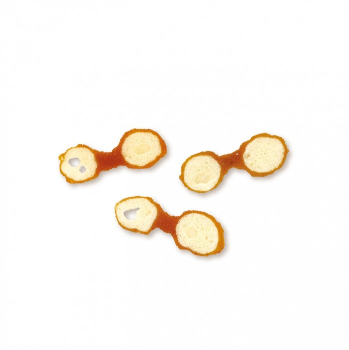 肉(雞肉、雞柳)、麵粉、甘油、山梨糖醇、礦物質(鈣)、膨脹劑、磷酸鹽(Na)、色素(β-胡蘿蔔素、紅曲)、牛磺酸。 |