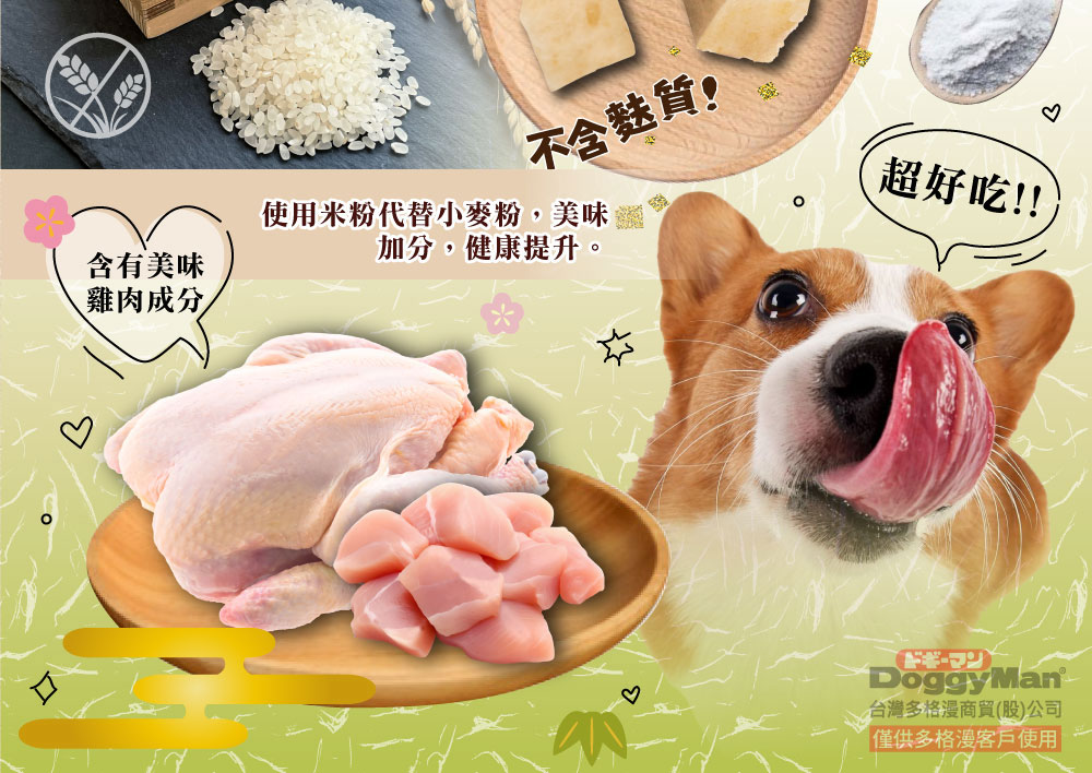 .不含小麥,改用米粉,對健康維持有益,並添加了葡萄糖胺、軟骨素和膠原蛋白
