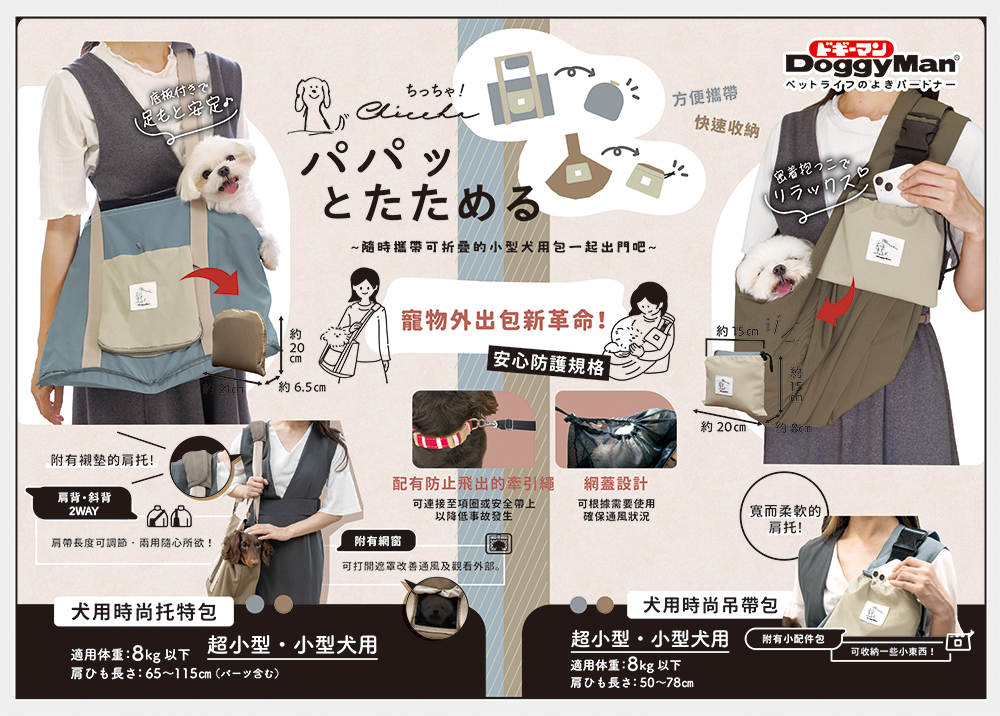 .隨時攜帶這個可折疊的小型犬用吊帶包一起出門吧♪