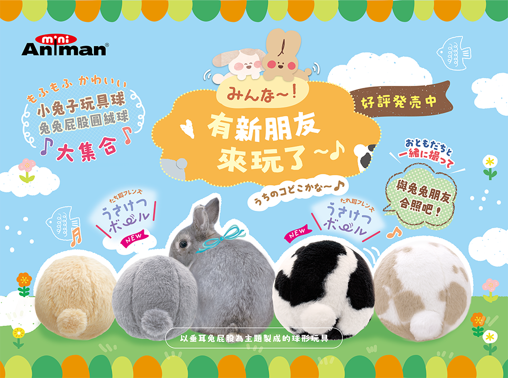 .以垂耳兔屁股為主題製成的球型玩具