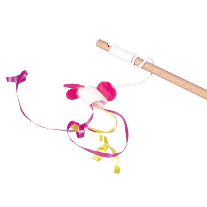 .使用天然蠶繭製成的棍子和繩子的逗貓棒,貓咪對於天然的繭和絲帶十分著迷