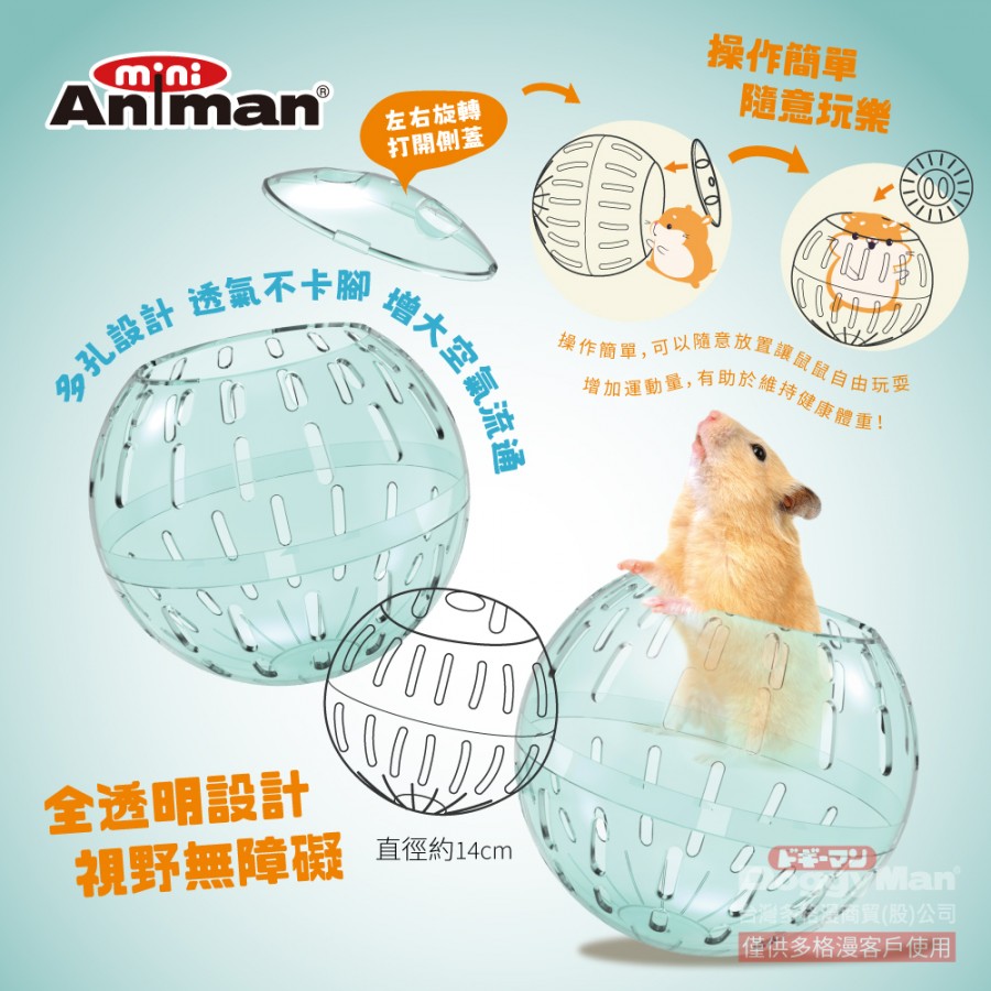 ・專為倉鼠設計的滾滾球,鑽進去滾動後,球球在地上滾動,讓小動物自由探索!