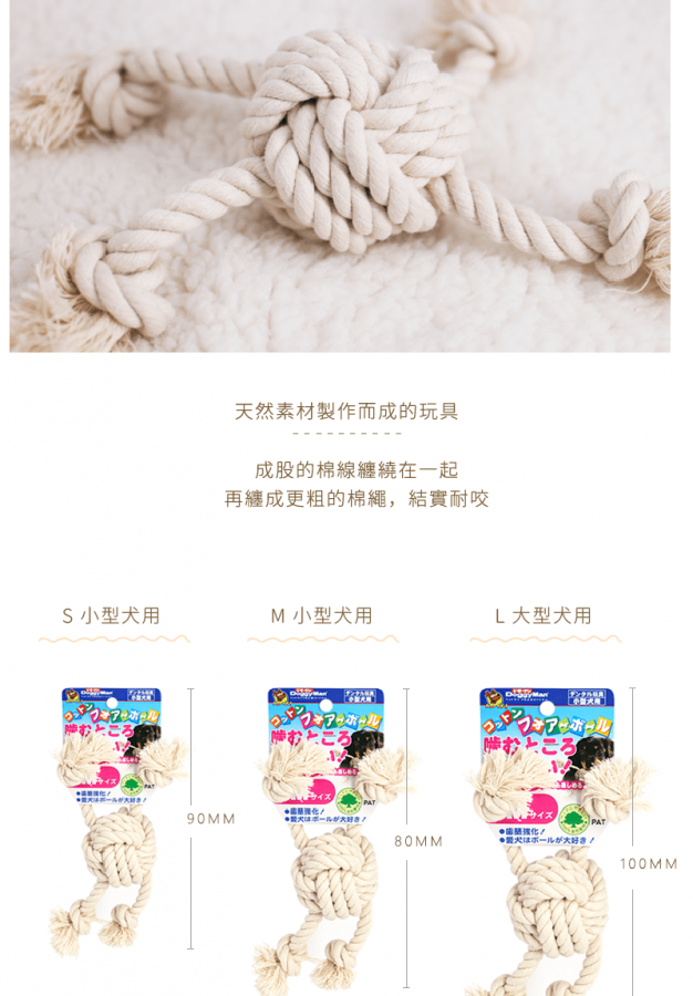 犬用自然素材棉質潔牙四向拉索玩具-S