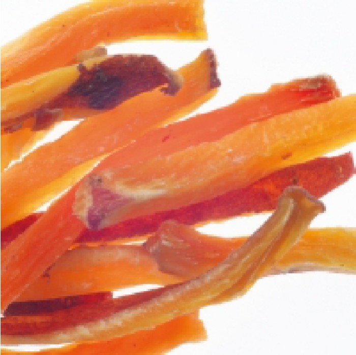 營養豐富紅薯,連皮帶肉的做成細條,蒸熟後再風乾。富含食物纖維、微甜的適口感,無添加著色料!