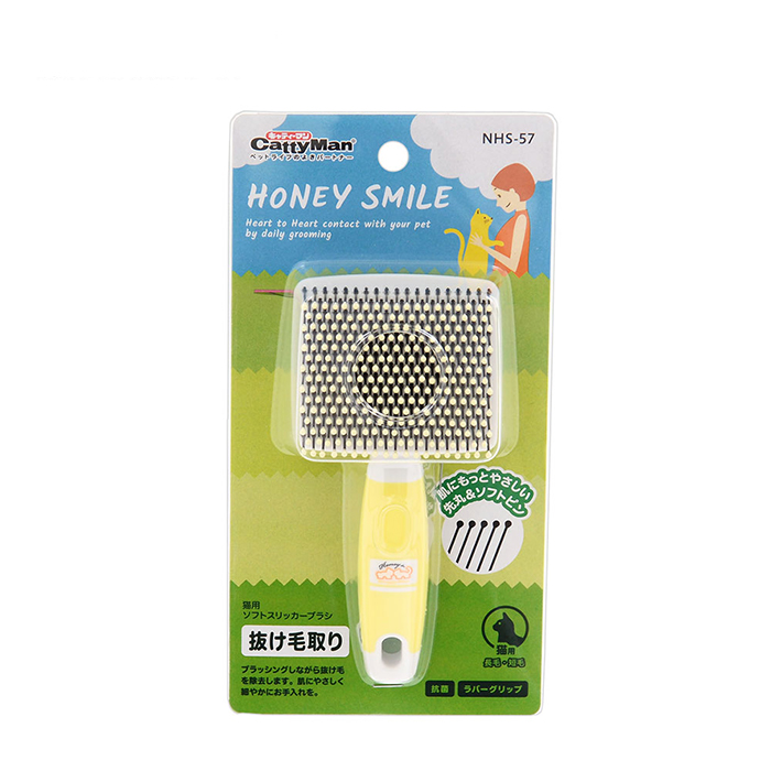 NHS-57 貓用抗菌柔軟方形針梳-黃