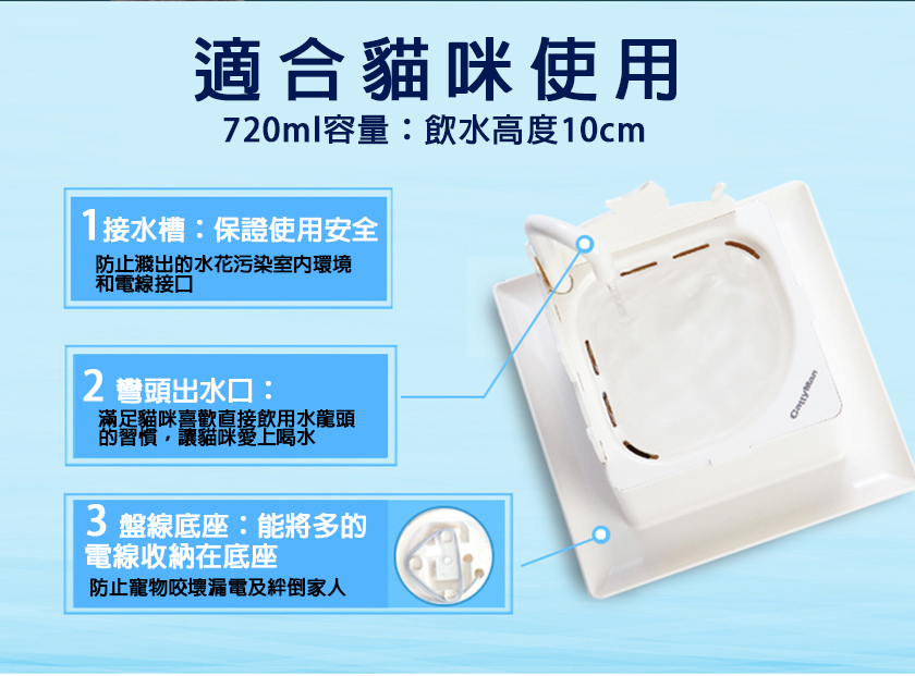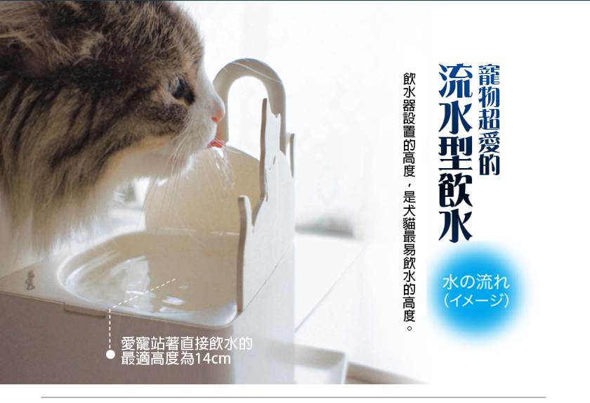 貓咪是天生嗜水性較低的動物,往往因為水喝得太少,容易導致腎臟過度負擔而生病,未來的醫療花費更是可觀,所以一個好的飲水器讓貓咪愛上喝水顯得格外重要。