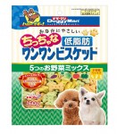 原材料 | 小麥粉、砂糖、澱粉類、植物油脂、蔬菜(高麗菜、甘藷、胡蘿蔔、番茄)、脫脂奶粉、菊苣抽取物(食物纖維、oligo寡糖)、膨脹劑、礦物類(鈉、鈣)、香料、絲蘭萃取物、色素(黃色4、黃色5、綠色1) |