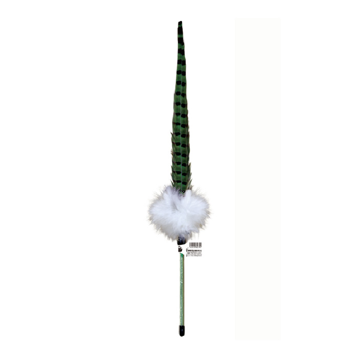 本產品使用了貓咪喜歡的禽類羽毛為材質,推出大幅度擺動的優雅山雞羽款可供選擇。不同禽類羽毛的不同觸感加上不一樣的玩耍軌跡讓貓咪釋放天性。