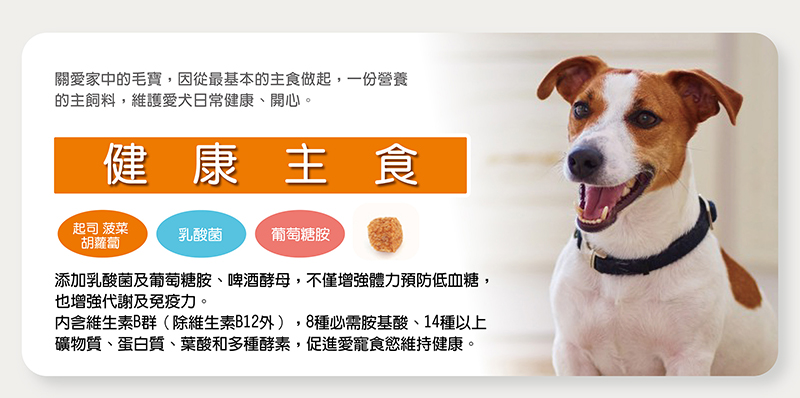 *添加乳酸菌及葡萄糖胺,呵護愛犬營養的頂級主食。