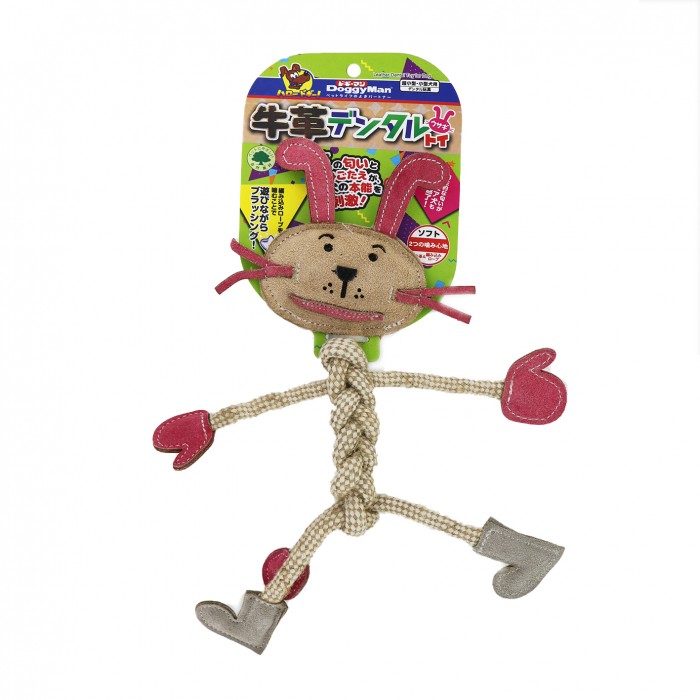 犬用牛革潔牙繩結玩具-兔子