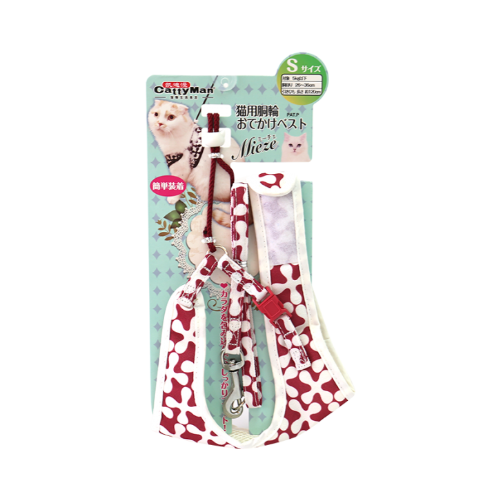貓用幸運草胸背牽繩組S-紅