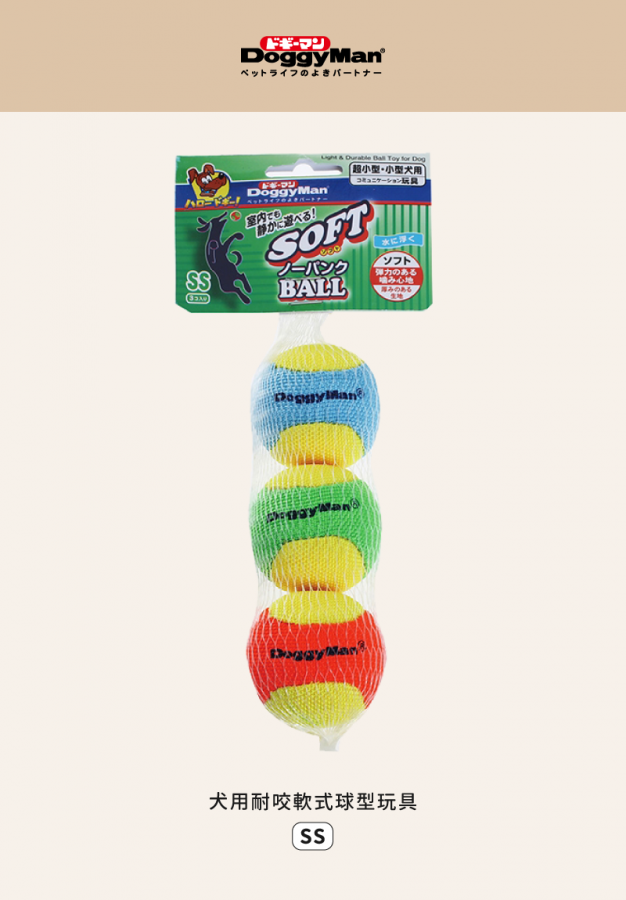 犬用耐咬軟式球型玩具- SS (3入)